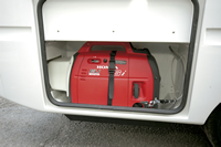 発電機は、後部収納部に収まっており、始動は外部から行うが、停止は室内からできる。