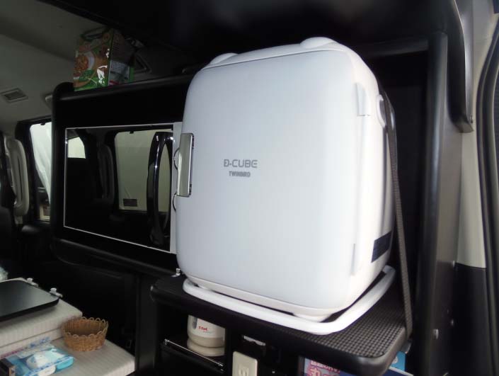 ペルチェ素子式の保冷保温庫用の小さなスペースは用意されているが、冷蔵力の強いポータブル冷蔵庫の設置場所も提案してほしい。