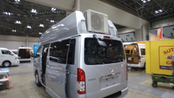 ジャパンキャンピングカーショー2016で発表された、ハイエース標準ボディベースのバンコン。一見して分かるように、大きなハイルーフを架装しているのが特徴。運転し易さと居住性の良さを両立させている。(続きを読む)