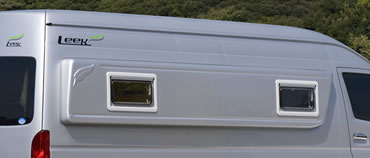 とダイネットのウインドウまで拡張できるフルタイプがあり、必要に応じて選択することができる。ダイネットまで拡張すると、まさに出窓のようなスペースが追加され、ダイネットでくつろぐ時にちょっとしたものを置く事ができ、実スペース以上のゆとり感が得られる。ベイウインドーでは、アクリル2重窓のオプションも用意されており、大きな面積をとるオリジナルのガラス窓に比較して、優れた断熱効果を持っている。フルタイプで21万円、リアタイプでも12万6千円と高価なオプションではあるが、装着することにより、リーク本来のインテリアの豪華さが際立ち、やはり満足感も違ってくるだろう。