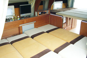 最近常設ベッドを装備するモデルが増えてきたが、実際常設ベッドは大変便利で、カップルで就寝する場合でも、どちらか片方が先に就寝したい場合、もう一人も付き合って就寝する必要は無い。これは結構重要なことで、日常ではそれぞれ自由な就