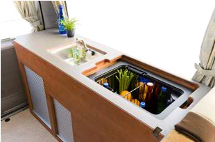 後部左側のシンクと冷蔵庫(ナッツRVのHPから) 後部右側の収納庫(ナッツRVのHPから)