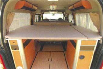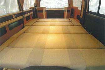 ベッドは2列目シートと3列目シートをフラットにすることによってセットする。 シートの裏面はフラットに作られており、これを上にしてベッドマットとして使用するため、ベッド面はフラットとなる。凹凸のあるシート座面とフラットなベッド面を使い分けることにより、両方の要求を両立させている。メインベッドはほぼ車幅いっぱいに設置することができるので、2,130x1,500mmと大きく、家庭用のダブルベッドの大きさを実現している。