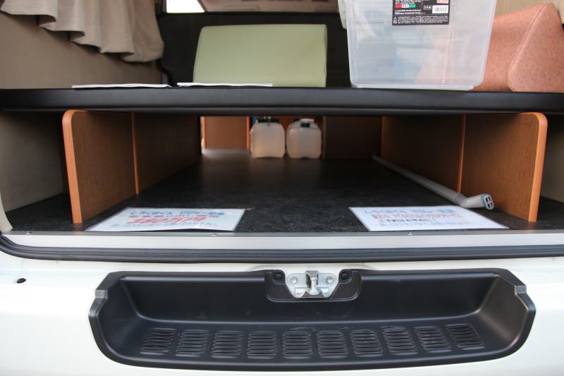 ベッドの下が大きな収納庫として使用できる。ベッドも使用しないなら、後部は全て収納スペースとな