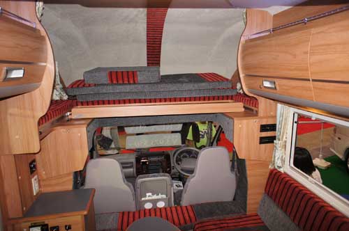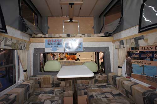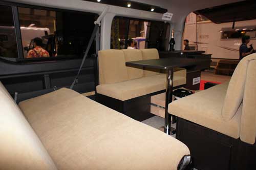 ハイエースロングワイドをベース車に使用したモデル。ポップアップルーフを持つため、日常は通常の使用、休日はキャンピングカーとして使用するといった使い方が可能。レイアウトは3種類あるが、これはギャレーを後部に持ってきたタイプ。