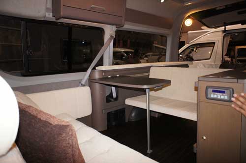 手ごろなサイズと充実した装備で人気のキャブコン、エム・ホルーヴァに6名乗車モデルが追加された。従来の4名乗車モデルが2名対座ダイネットを持つのに対し、4名対座のダイネットに変更されている。後部には今まで通り子供用の2段ベッドを装備している。