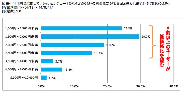 以下は、日本RV協会が6月に発表したレポートだが、安価なキャンプ場を求めるユーザーの声が明確である。
