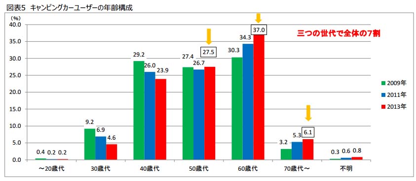 キャンピングカーのユーザーは60歳代が最多