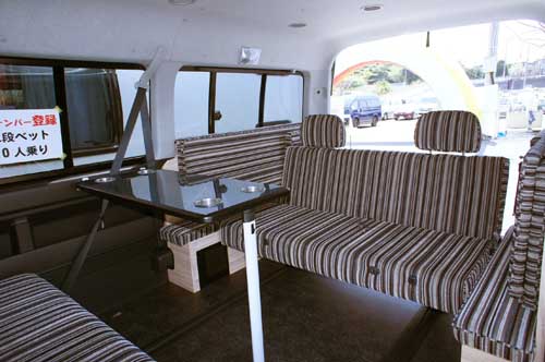 ボンゴをベース車にした同社の代表車種であるマンボウの2011年モデル。オリジナルのマスクと個性的なカラーリングにより、”よくある”ボンゴベースのキャブコンのイメージから脱却している。車内は落ち着いたベージュで統一され、家具類は高級感がある。