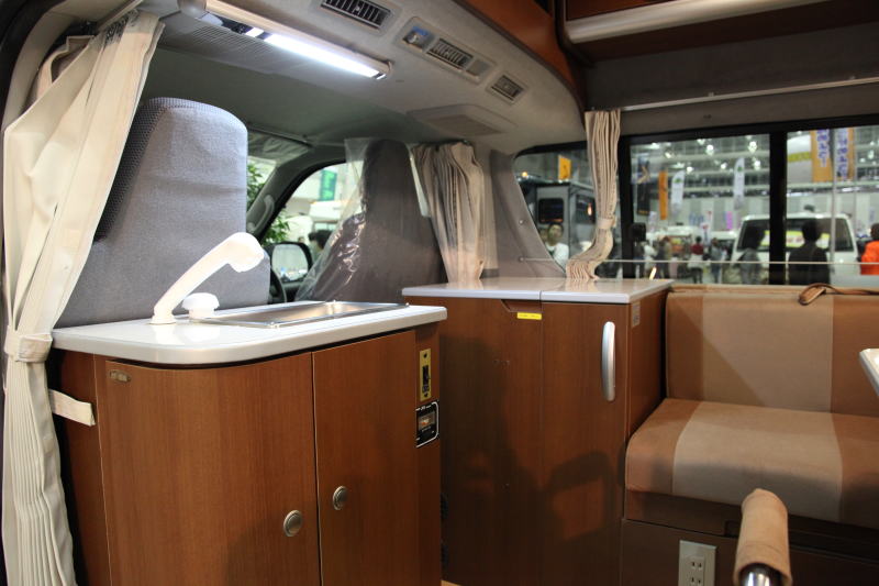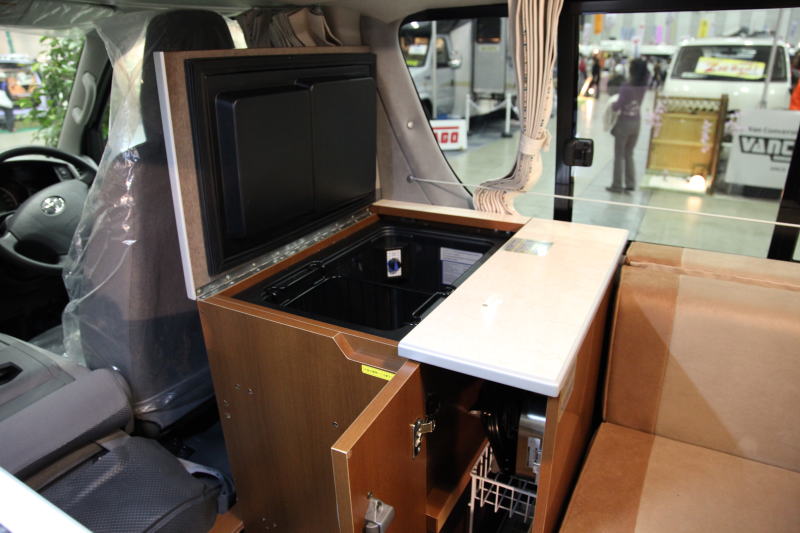 キッチンは運転席、助手席のすぐ後方に設置されている。運転席からダイネットに行き来し易いように、シンクユニット部分と冷蔵庫が収納されているユニットが通路を挟んで分割されている。シンクは標準的な大きさのもので、ユニットの下に10リッターの給水タンクと、10リッターの排水タンクが置かれている。冷蔵庫は上開きの40リッターのものが置かれており、冷蔵庫の上蓋は調理台になっている。